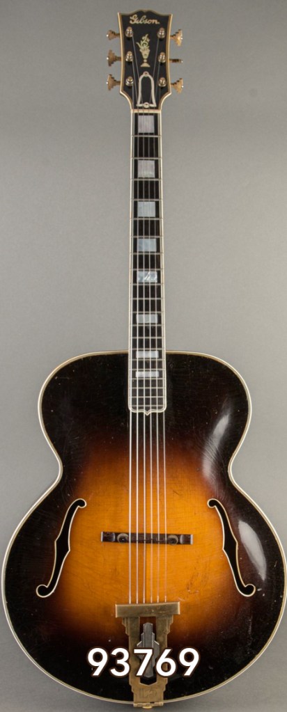 In August 1935, the Gibson L-5 was given a radical makeover emerging with a larger 17-inch wide ‘Advanced’ body and multiple binding around the top, back, fingerboard, pickguard and headstock – the latter now restyled so that it was wider at the top (the familiar Gibson design). More radically, the first ‘Advanced’ L-5s also incorporated an X-braced (as opposed to parallel braced) top.
