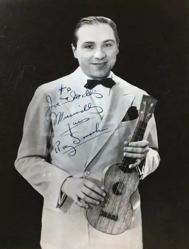 The short Vitaphone film ‘His Pastimes’, showcases Smeck’s skills on the Hawaiian guitar, the ukulele and the banjo. A natural showman, Roy Smeck would spin the ukulele mid performance while ‘tap dancing’ on its body with his fingers!