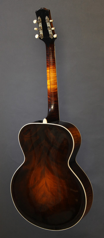 Notes: “The neck on this guitar has the profile and sunburst pattern of a late 1920s L-5 rather than a Loar-period guitar,” says Walter Carter. “There is finish touchup around the neck heel that is of a slightly redder shade than that of a typical Loar L-5, so it was either held back at the factory or returned to have the neck re-shaped. It’s factory work, and from a playability standpoint, it’s an improvement.”