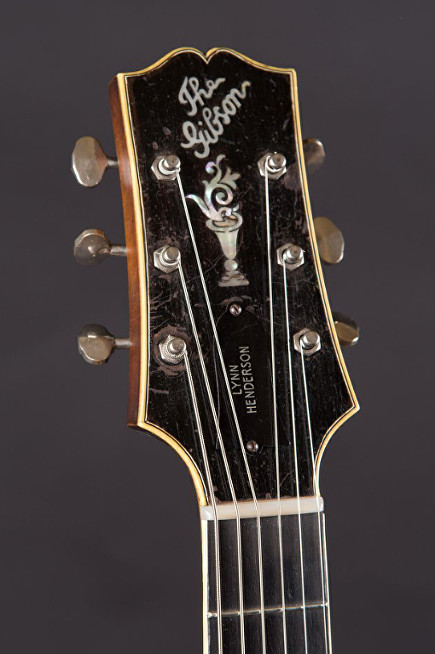 Headstock: Diagonal ‘The Gibson’ logo. Has the name ‘Lynn Henderson’ on the truss rod cover