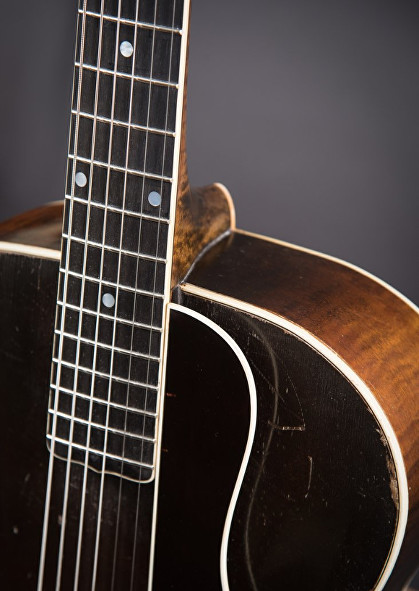 Notes: At some point, the guitar was fitted with a block inlay fingerboard, which has since been replaced with the correct dot inlay fingerbroard. The pickguard is a replica and the guitar has been refretted