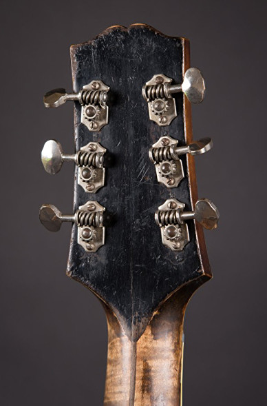 Hardware: Silver-plated metal parts including wrap-over tailpiece. Incorrect yet very rare 1934-35 Grover tuners and non-original long pickguard