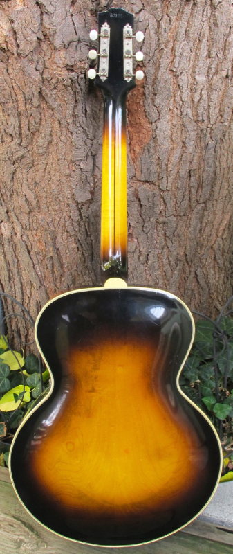Notes: The guitar has been re-necked using the original headstock overlay and fingerboard (20 frets with pointed end) but with the heel changed to the later rounded style. The serial number is now stamped on the back of the headstock. The body has been refinished and re-bound with five-ply binding. Has original hardshell case