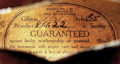 Body: Maple back and sides. Has white oval ‘Guaranteed’ label