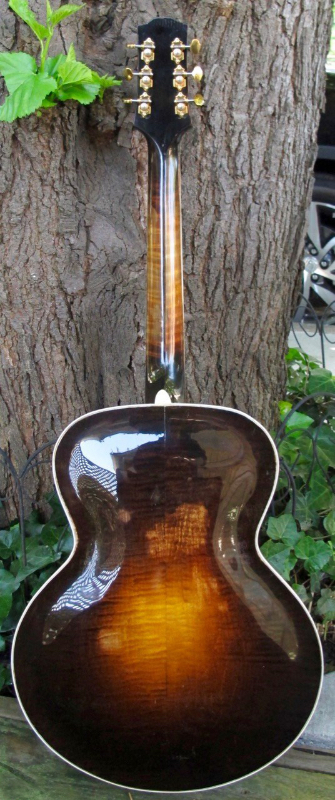 Notes: Eric Schoenberg (of Schoenberg Guitars) says: “We removed a dark overspray and the guitar now has a shine on the finish. There’s an area on the back where the original stain was worn and this is now covered with finish.”