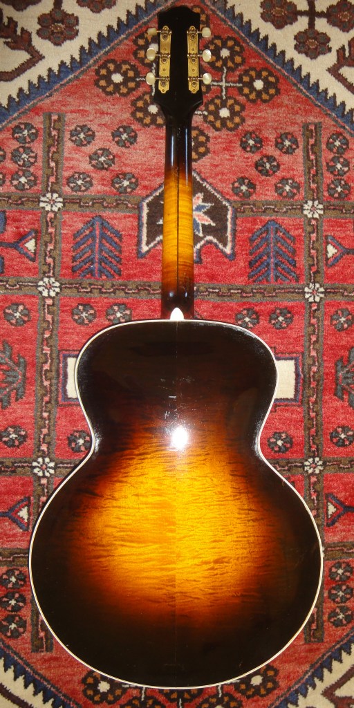 Since the above photos were taken, L-5 serial number 87506 has been fitted with a new 20 fret fingerboard with a pointed end and dot inlays from the third fret. The new fingerboard was made and installed by a CA repair person Dimitri Tenev.