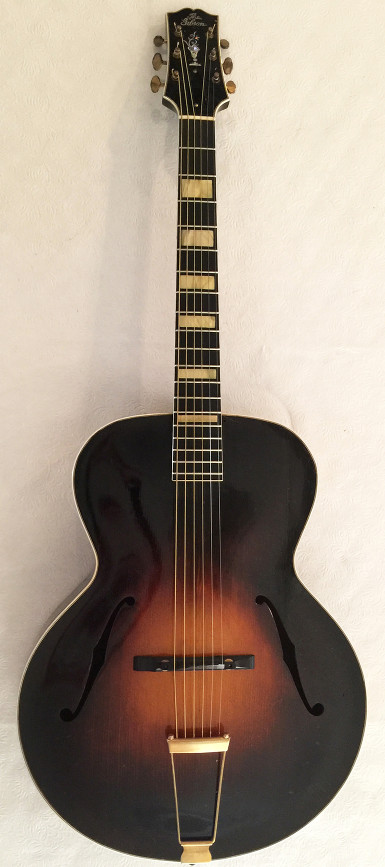 Hardware: Gold-plated metal parts including regular tailpiece and individual open-back Grover 98G ‘Sta-tite’ tuners with butterbean keys