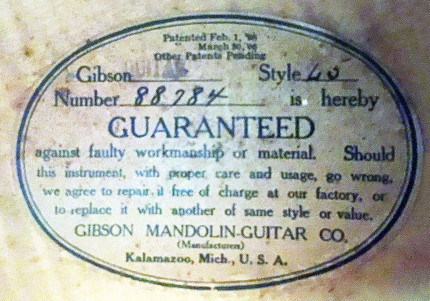 Notes: There is one repaired top crack on the upper treble side bout, the pickguard is missing and the fingerboard has been refretted