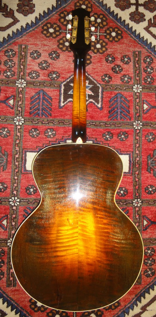 Since the above photos were taken, L-5 serial number 87506 has been fitted with a new 20 fret fingerboard with a pointed end and dot inlays from the third fret. The fingerboard work was done by Dimitri Tenev