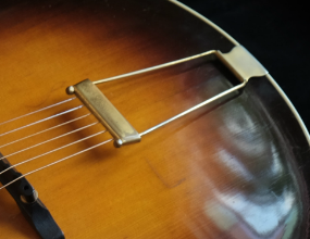 It was sent to Gibson for repairs in 1937 and returned to Bringe & Evans Music Store of Utica, New York on the 22nd July 1937. The shipping ledgers do not indicate the nature of the repair.
