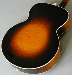 Body: 17-inch body with maple back and sides, X-braced top and small unbound f-holes