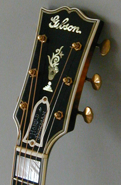 Headstock: Horizontal ‘Gibson’ script logo with the name ‘Harold Dickman’ engraved on the trussrod cover