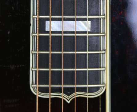 This guitar was shipped on the 18th of June 1936 and is listed in Gibson’s shipping ledgers as “L-5 old.” The FON indicates a pre-1935 body. The fingerboard appears to have been replaced in the late 30s.