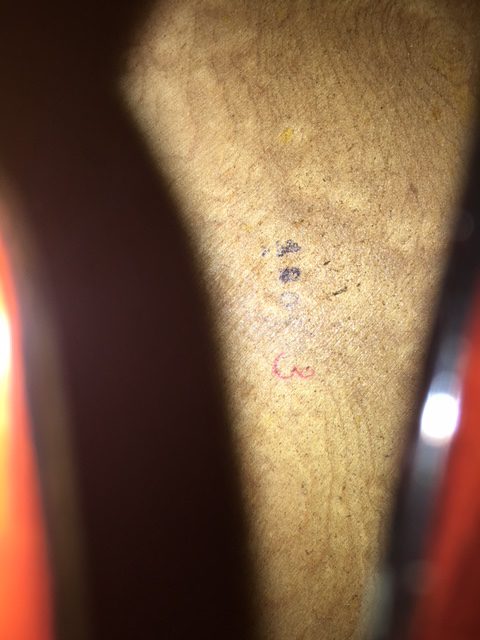 Notes: This guitar has been buffed but retains the original finish with possibly some overspray in a couple of spots. ‘94139’ is a serial number that also appears on an L-7 T tenor guitar. Shipped 26th May 1937 to Griffith School of Music Atlanta, Ga.