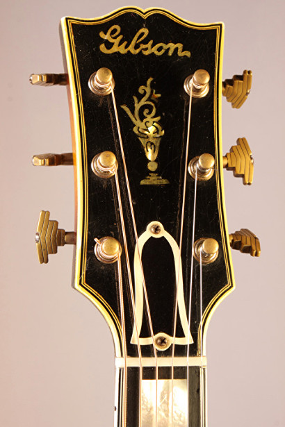 Notes: Reproduction pickguard, overspray on top and back (very old – possibly Gibson factory work), repaired side crack near end block