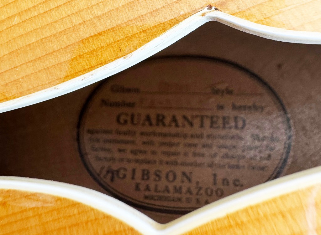Notes: Gibson L-5N serial number FA-5083. It was originally taken out of the factory by Charles Havenga as a salesman’s sample on 20th February 1940 in a second-hand #600 case. The guitar was returned for repairs and reshipped on 4th Feb 1942 to Lyon & Healy in a #606 case.